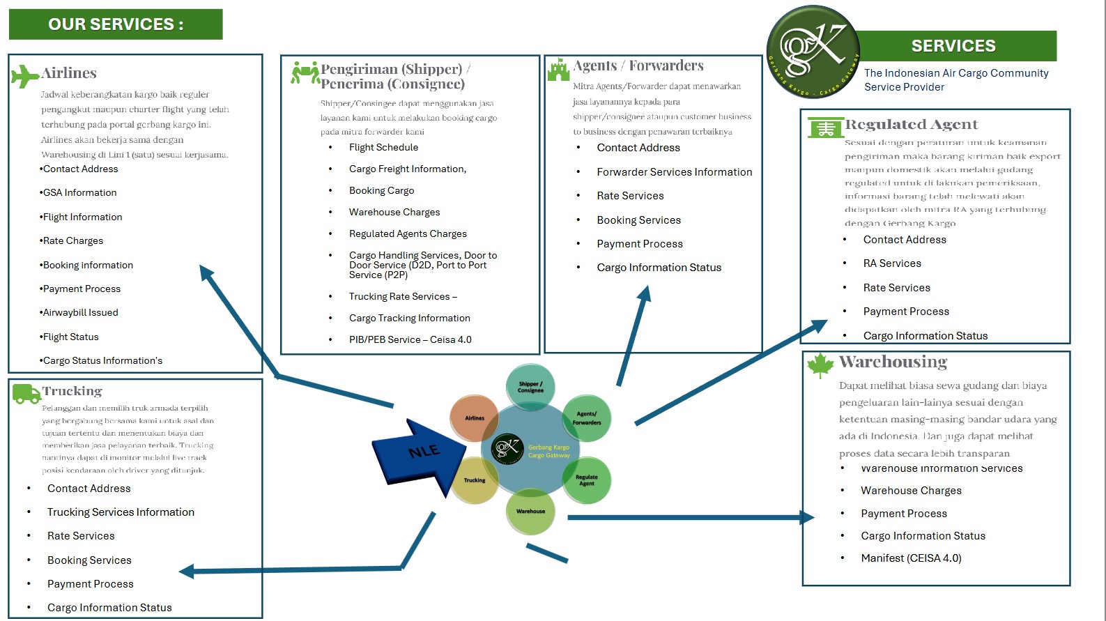 facilitates the exchange of electronic messages between various parties involved in the Indonesian air cargo supply chain, allowing for faster and more efficient communication and enhancing transparency.